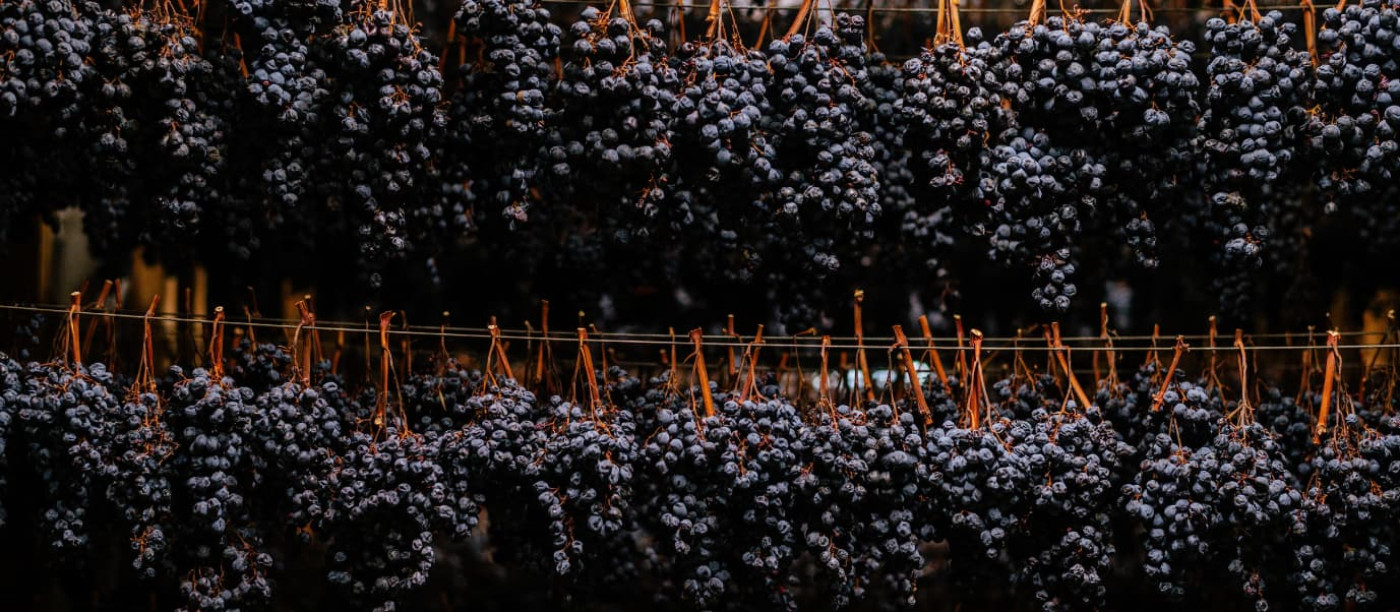 Er is iets poëtisch aan het idee dat een wijn begint met uitdroging. Terwijl de meeste wijnmakers zich haasten om hun druiven zo snel mogelijk te persen, kiezen anderen er juist voor om even te wachten. Hun druiven liggen te rusten op houten rekken, alsof ze een welverdiende vakantie nemen na een druk groeiseizoen. De lucht in de opslagruimtes — de fruttai — ruikt naar rozijnen, stro en een vleugje herfst. Dit is het domein van de appassimento, de eeuwenoude techniek waarmee Italianen hun druiven laten indrogen vóór ze er wijn van maken.