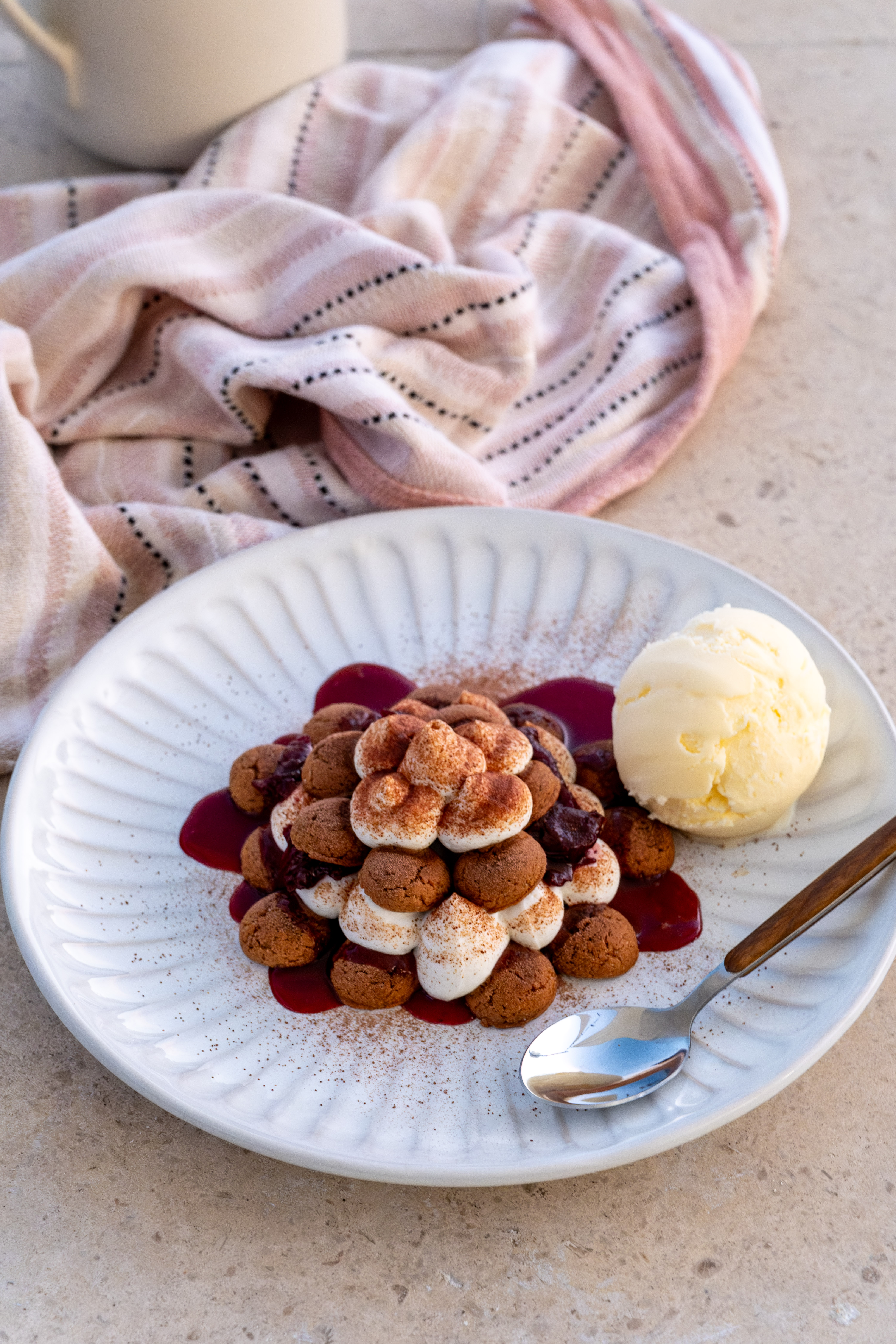 Deze tiramisu met kruidnoten en krieken is een feestelijke twist op de klassieker. De kruidnoten zorgen voor crunch, de krieken voor een frisse balans en de mascarponecrème maakt het hemels romig.