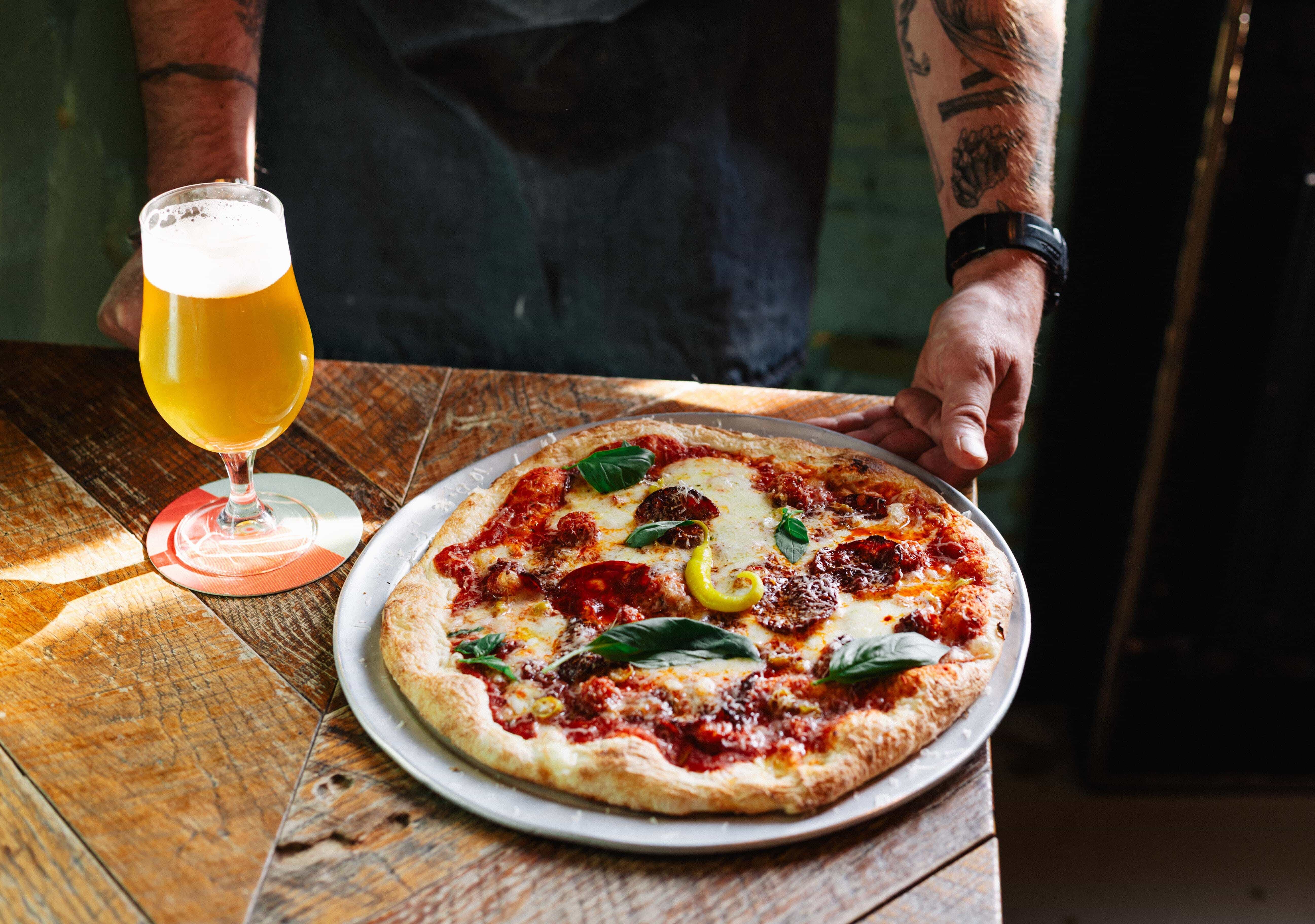 Bij elke pizza hoort een passend glas. Voor de BASK Pepperoni selecteerde Sam het Belgische Fourchette-bier – een gastronomische tripel die vanaf nu ook op de kaart staat in alle Otomat-restaurants. Een pairing die het karakter van de pizza perfect ondersteunt.