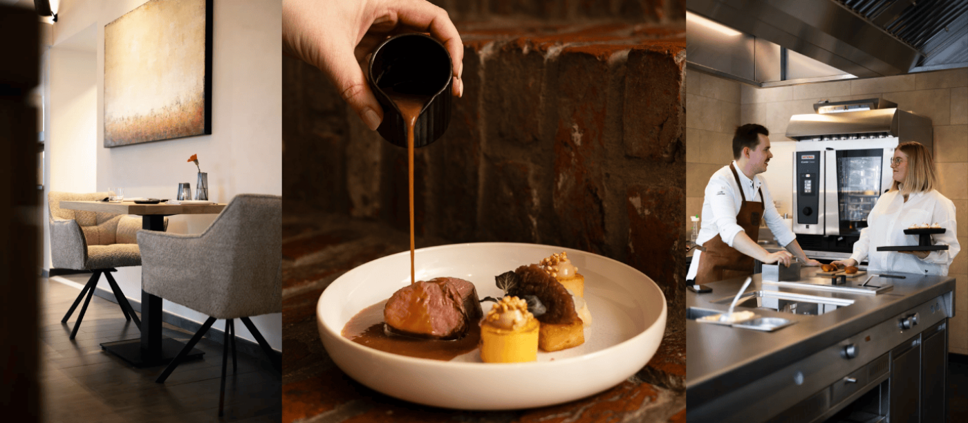 De open keuken draagt bij aan de beleving. Gasten zien hoe hun gerechten worden bereid en ervaren de rust en focus waarmee gewerkt wordt. In de zaal heerst een ontspannen, bijna huiselijke sfeer, waarin service discreet en zorgeloos aanvoelt. Het doel is duidelijk: gasten moeten zich op hun gemak voelen en volledig kunnen genieten, alsof ze even thuis zijn.