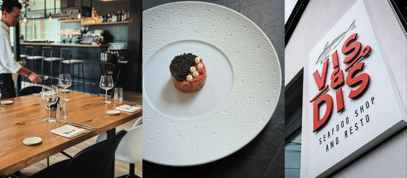 Wie aanschuift bij Vis & Dis, merkt meteen dat hier alles klopt: het interieur dat de maritieme roots subtiel vertaalt in moderne elegantie, de gastvrije bediening, en de gerechten waarin het product altijd de hoofdrol speelt. “We willen dat onze gasten meer meenemen dan enkel een maaltijd — een herinnering aan een avond waarin alles samenviel: beleving, gastronomie en kwaliteit.”