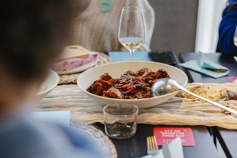 Wie Curaçao zegt, denkt meteen aan witte stranden en kleurrijke gebouwen. Maar ken jij de Curaçaose keuken al? Het eiland is een smeltkroes van culturen, van Nederlands tot Afrikaans en Latijns-Amerikaans, en dat proef je ook in de keuken. Wij mochten een namiddag achter het fornuis doorbrengen met Justin Niessen, de chef die bekend werd door Masterchef Holland in 2016 en die graag het eten uit zijn geboorteland met de wereld deelt. Als hoofdgerecht verschijnen er twee stoofpotjes op tafel, waaronder deze stoofkip met rijst.