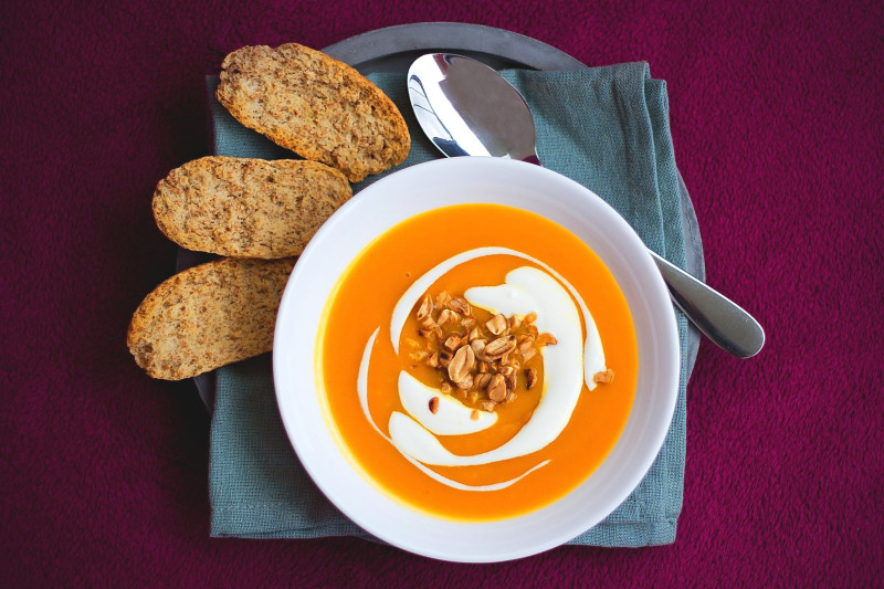 Niets zo troostrijk als een diepgekleurde, romige kom soep. Deze spicy versie is een warme knuffel in vloeibare vorm met het rijke zoete van pompoen, de rokerige, aromatische ‘bite’ van een habanero en de volle, nootachtige body van pinda’s. Een gerecht waarin West-Afrikaanse invloeden (denk pinda & peper) en herfstige Europese smaken elkaar ontmoeten. Het resultaat? Een soep die je niet zomaar opdient, maar die je beleeft.